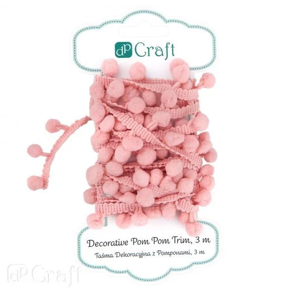 Taśma Dekoracyjna z Pomponami 3m Różowa /DpCraft