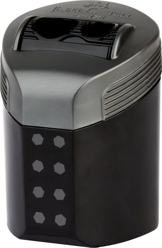 Temperówka podwójna RollOn Faber-Castell w kolorze czarnym i niebieskim z pojemnikiem na ostrużyny. Atrakcyjny motyw Dots. Z opatentowanym systemem obrotowym zamykania i otwierania. Dla wygodnego, łatwego i czystego temperowania. Przeznaczona do klasycznych i trójkątnych kredek i ołówków w standardowym rozmiarze i Jumbo. Wysokiej jakości ostrze wyprodukowane w Niemczech ze śrubką bezpieczeństwa. Dostępne zapasowe ostrza.