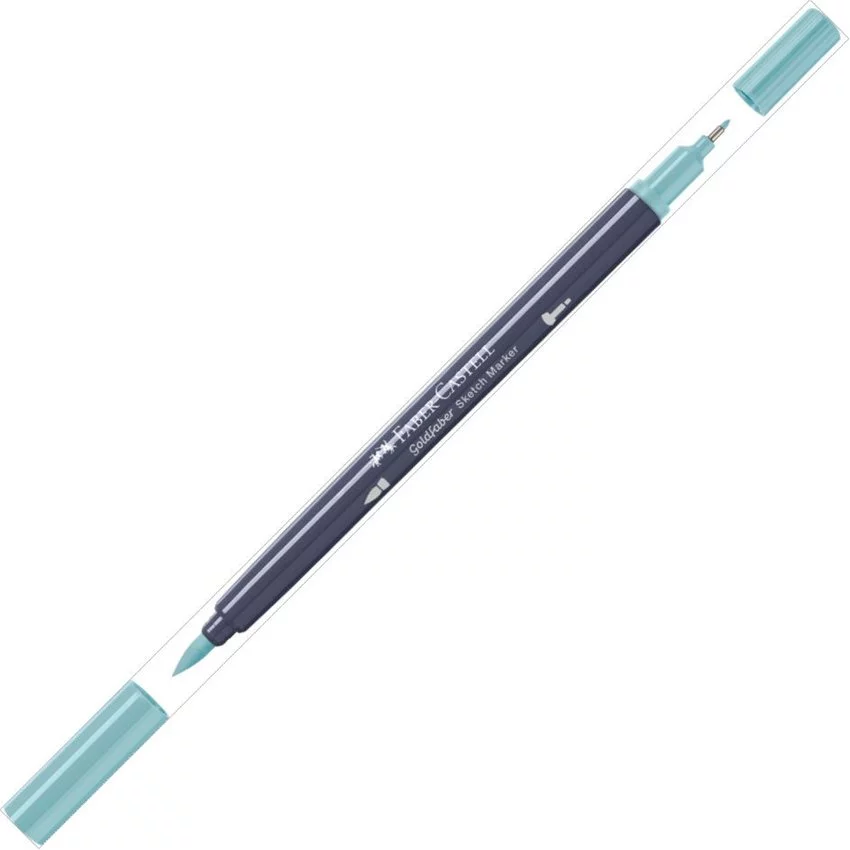 Pisak dwustronny Goldfaber Sketch Faber-Castell w kolorze 311 (vintage turquoise). Doskonały dla artystów i hobbystów, zachwyca wszechstronnością zastosowania. Zapewnia łatwe blendowanie bez smug i tworzenie idealnych przejść kolorystycznych. Posiada dwie końcówki: miękką, elastyczną końcówkę pędzelkową do zadań artystycznych i cienką końcówkę 0,6 mm do konturów i detali. Z szybkoschnącym i permanentnym tuszem na bazie alkoholu. Zatyczki i korpus są wykonane w 100% z materiału pochodzącego z recyklingu, w związku z czym mogą pojawić się niewielkie różnice kolorystyczne. Neutralna pod względem emisji dwutlenku węgla produkcja.