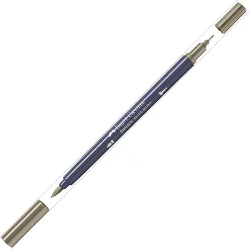 Pisak dwustronny Goldfaber Sketch Faber-Castell w kolorze 274 (warm grey V). Doskonały dla artystów i hobbystów, zachwyca wszechstronnością zastosowania. Zapewnia łatwe blendowanie bez smug i tworzenie idealnych przejść kolorystycznych. Posiada dwie końcówki: miękką, elastyczną końcówkę pędzelkową do zadań artystycznych i cienką końcówkę 0,6 mm do konturów i detali. Z szybkoschnącym i permanentnym tuszem na bazie alkoholu. Zatyczki i korpus są wykonane w 100% z materiału pochodzącego z recyklingu, w związku z czym mogą pojawić się niewielkie różnice kolorystyczne. Neutralna pod względem emisji dwutlenku węgla produkcja.