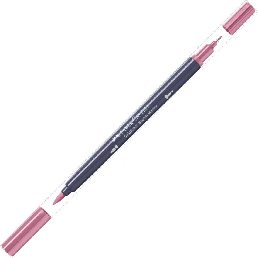 Pisak dwustronny Goldfaber Sketch Faber-Castell w kolorze 304 (vintage rose). Doskonały dla artystów i hobbystów, zachwyca wszechstronnością zastosowania. Zapewnia łatwe blendowanie bez smug i tworzenie idealnych przejść kolorystycznych. Posiada dwie końcówki: miękką, elastyczną końcówkę pędzelkową do zadań artystycznych i cienką końcówkę 0,6 mm do konturów i detali. Z szybkoschnącym i permanentnym tuszem na bazie alkoholu. Zatyczki i korpus są wykonane w 100% z materiału pochodzącego z recyklingu, w związku z czym mogą pojawić się niewielkie różnice kolorystyczne. Neutralna pod względem emisji dwutlenku węgla produkcja.