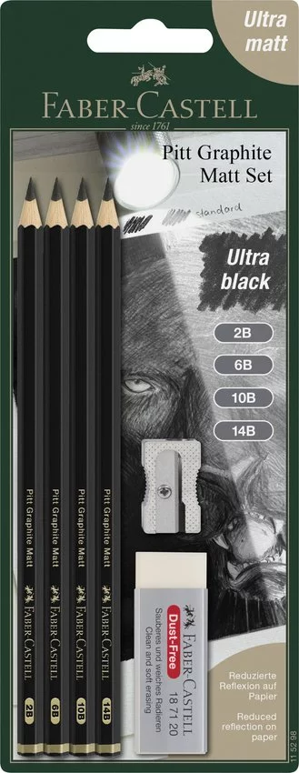 Pitt Graphite Matt Zestaw Na Blistrze 4 Ołówki 2B 6B 10B 14B + Gumka + Temperówka Faber-Castell