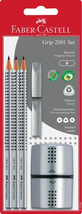 Grip 2001 Set Srebrny 3X Ołówek + Temperówka + 2 X Gumka Nakładka Blister Faber-Castell