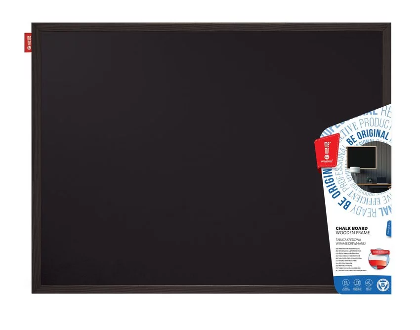 Tablica kredowa MemoBe.Właściwości suchościeralne pozwalają na pisanie po powierzchni tablicy kredą lub markerami kredowymi. Powierzchnia wykonana jest z materiału HDF o grub. 3 mm pokrytego matową warstwą lakieru w kolorze czarnym. Optymalny poziom szorstkości zapewnia wygodne pisanie. Rama wykonana jest z naturalnego drewna sosnowego lakierowanego w kolorze czarnym. Tablica jest lekka i szybka w montażu.Możliwość montażu tablicy w pionie lub poziomie. Do zestawu dołączony jest komplet haczyków do montażu tablicy, gąbka, kreda oraz instrukcja montażu. Produkt przeznaczony jest do użytku wewnętrznego. Tablicę cechuje niezwykła trwałość i sztywność dzięki zastosowaniu wysokiej jakości materiałów, które zapewniają bezpieczeństwo podczas ich montażu i użytkowania. Dzięki wysokiej jakości powierzchni, prezentowane na tablicy treści są dobrze widoczne i czytelne. Okres gwarancji wynosi 2 lata.Czyszczenie tablicy - miękką, wilgotną gąbką lub ściereczką.Tablice kredowe MemoBe posiadają Certyfikat Zgodności, który potwierdza, że wyrób spełnia wymagania zawarte w normie PN-EN 14434:2010, tzn. jest bezpieczny podczas jego montażu i użytkowania. Produkt opatrzony jest znakiem B (Bezpieczeństwo).Tablica polecana jest jako wyposażenie dla wszystkich jednostek edukacyjnych, instytucji biurowych, w punktach sektora hotelarskiego i gastronomicznego Horeca oraz jako modny element wyposażenia domu. Klasyczna i modernistyczna konstrukcja oraz kunsztowne wykończenie sprawiają, że tablica doskonale wkomponowuje się w wystrój: - każdej klasy w szkole, przedszkola i na uczelni- w sali zabaw dla dzieci i młodzieży- w biurze, a szczególnie w biurach co-workingowych- na korytarzu i w każdym pomieszczeniu przestrzeni wspólnej i publicznej- w placówkach medycznych, w przychodni i w szpitalu- w hotelu i innych bazach noclegowych- w restauracji, w kawiarni, w barze, w kantynie, w firmie cateringowej - w przestrzeni prywatnej w salonie, w pokoju lub w kuchni- a także wszędzie tam, gdzie podpowie