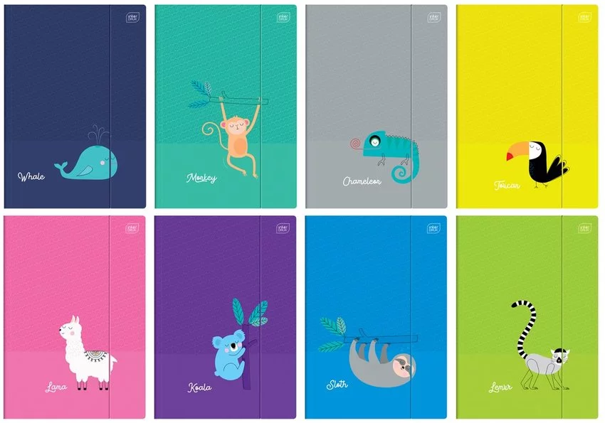 Supersztywne teczki z gumką w formacie A4+, wykonane z wysokiej jakości surowca, zabezpieczone hybrydowym i błyszczącym lakierem. Kolorowy zadruk po wewnętrznej stronie. Zamknięcie za pomocą solidnej gumki. W kolekcji 8 wzorów z wizerunkami zwierzaków z kolekcji B&B.