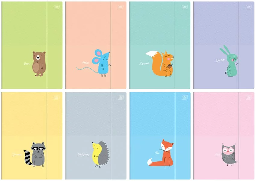 Supersztywne teczki z gumką w formacie A4+, wykonane z wysokiej jakości surowca, zabezpieczone hybrydowym i błyszczącym lakierem. Kolorowy zadruk po wewnętrznej stronie. Zamknięcie za pomocą solidnej gumki. W kolekcji 8 wzorów z wizerunkami zwierzaków z kolekcji B&B.