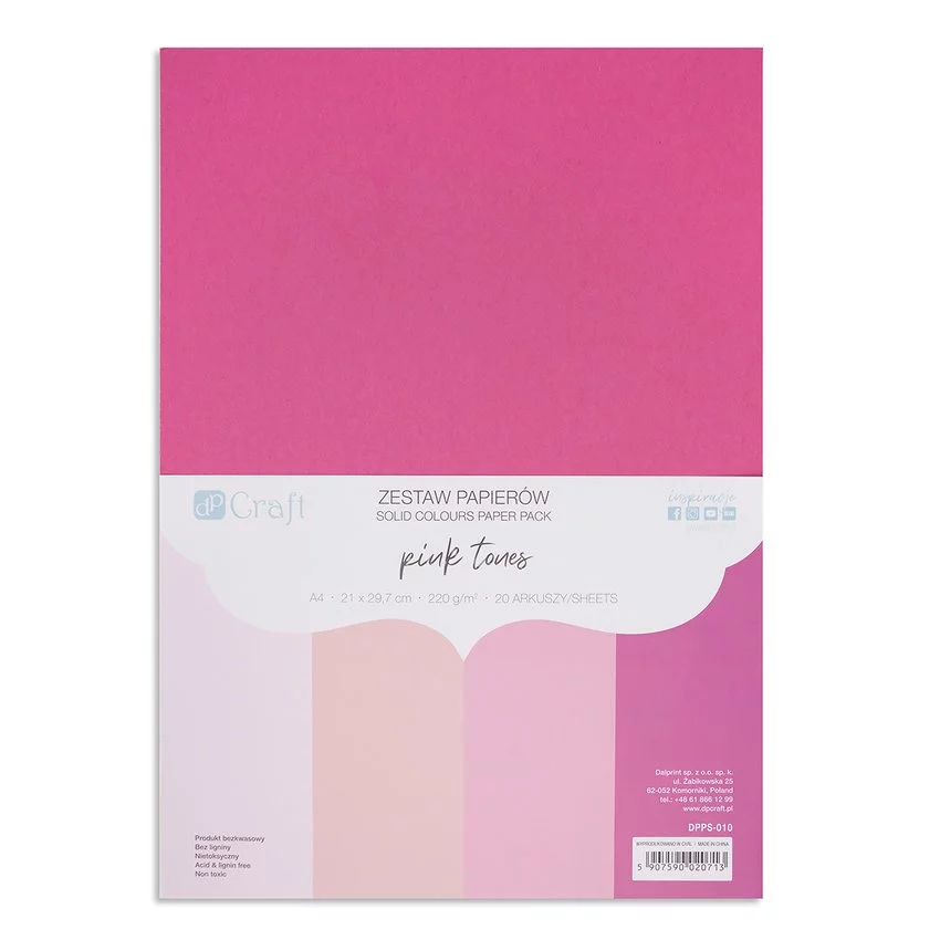 Zestaw Papierów 220G - Pink Tones A4 20 Ark. /DpCraft