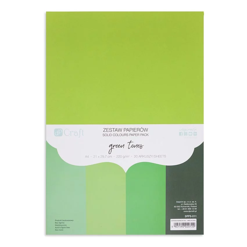 Zestaw Papierów 220G - Green Tones A4 20 Ark. /DpCraft