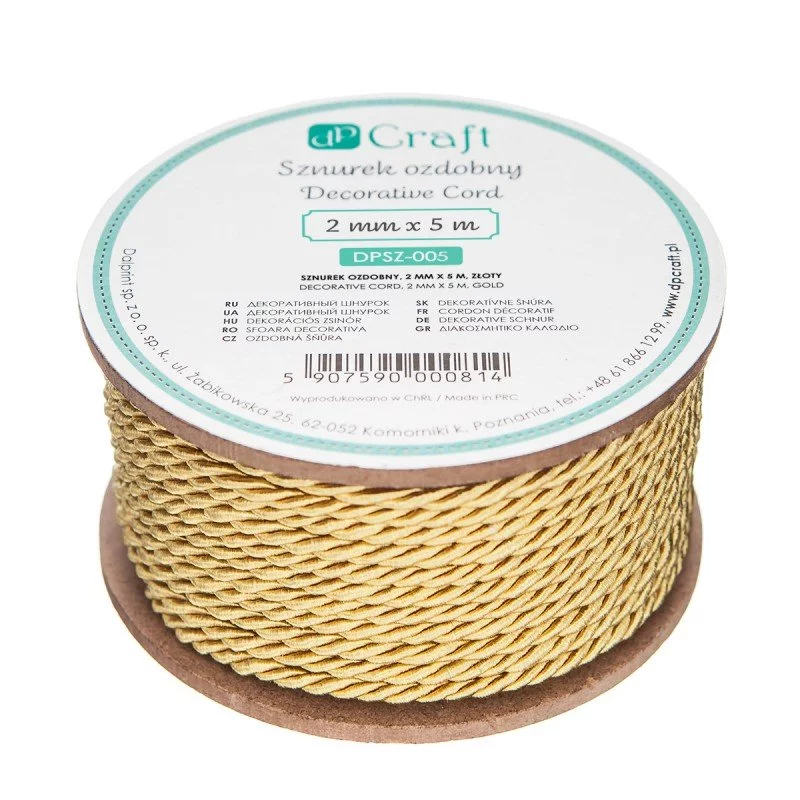 Sznurek Ozdobny 2mm x 5m Złoty /DpCraft
