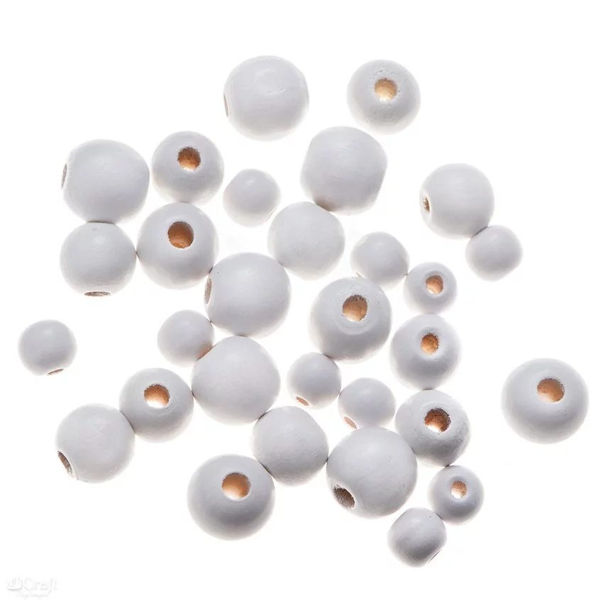 Koraliki Drewniane Kulki 30szt. Białe /Dpcraft