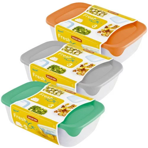 - Zestaw 3 pojemników FRESH&GO od Curver to stylowe i funkcjonalne rozwiązanie do przechowywania żywności – idealne do codziennego użytku w domu, pracy lub podróży.