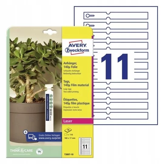Etykiety pętelkowe do roślin, foliowe (10 arkuszy) 160x17mm No.T3007-10 / Avery