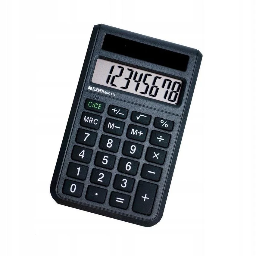 Kalkulator ekologiczny, kieszonkowy 8-pozycyjny wyświetlacz, 3 przyciski pamięci MRC, M , M-, Zasilanie solarne, Pierwiastek kwadratowy ? , Zmiana znaku /- , Przycisk procenty , Brak konieczności użycia baterii