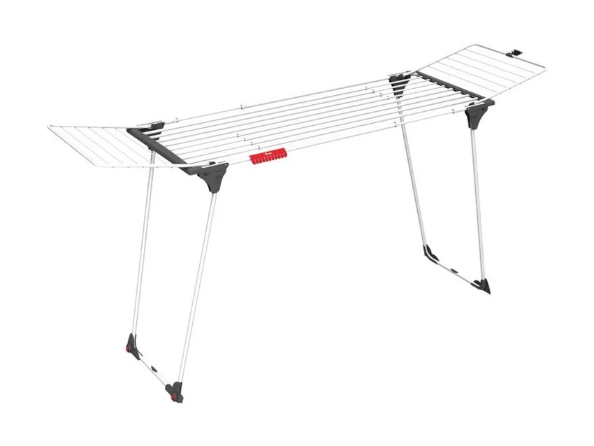 Dodatkowo dla zapewnienia komfortu suszenia długich rzeczy suszarka ma podwyższony stelaż. Jej teleskopowe linki są regulowane.