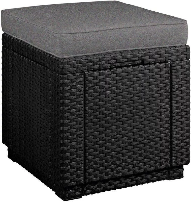 Nie przejmuj się pobrudzoną poduszką, bo poszewkę możesz ściągnąć i łatwo wyprać. Mebla nie musisz chować do środka i zaprzątać sobie nim głowy. Nie wymaga żadnej konserwacji, bo jest wykonany z wysokiej jakości tworzywa sztucznego - polipropylenu. Dzięki temu jest łatwy w utrzymaniu czystości i niezwykle trwały. Solidne tworzywo gwarantuje również to, że twoja pufa nie zdeformuje się i nie zmieni koloru pod wpływem promieniowania słonecznego czy zimna. Tworzywo z jakiego jest wykonana do złudzenia przypomina technorattanową plecionkę. Pojemność pufy wynosi aż 50l. Sprawdzi się w każdym ogrodzie i na tarasie. Jest idealna na prezent i prosta w montażu.