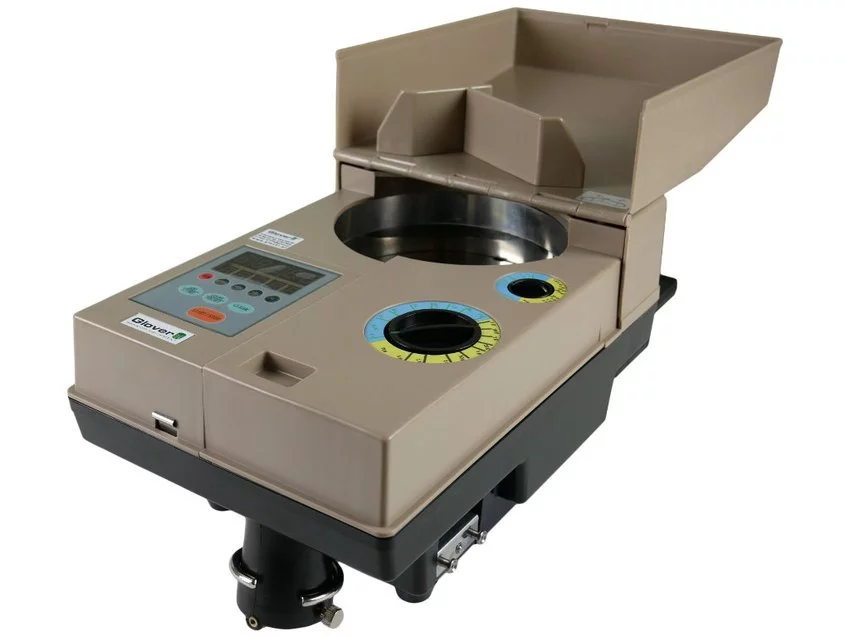 Glover CC-20.2 to przenośna liczarka do bilonu o niewielkich rozmiarach.Bardzo dobrze sprawdza się we wszystkich miejscach, gdzie jest potrzeba szybkiego przeliczenia dużych ilości monet i pakowania ich w worki. Liczarka posiada zamykaną klapę, która służy również za podajnik monet, rączkę ułatwiającą transport urządzenia oraz jest wyposażona w 5 cyfrowy wyświetlacz LED.Dzięki fabrycznym ustawieniom liczarki jest możliwość liczenia monet polskich i EURO.