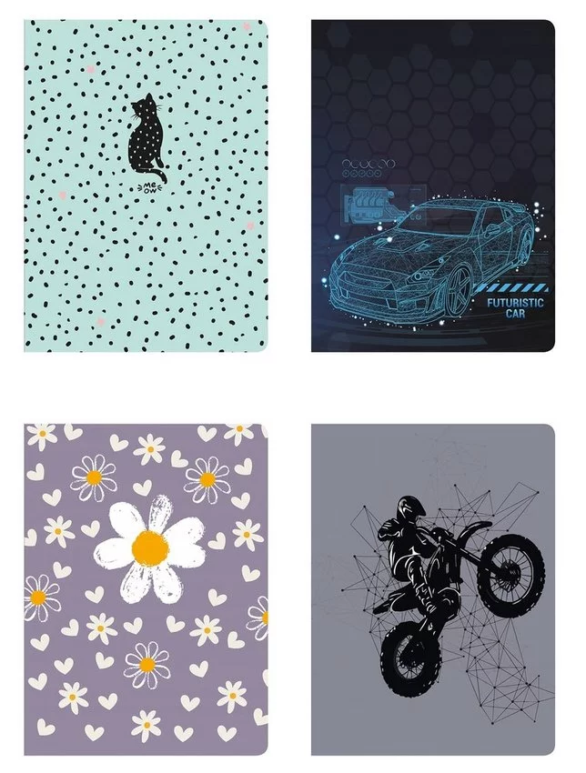 - papier 60g/m2 nie śliski, idealnie gładki, zapewnia to komfort pisania, długopis i ołówek nie rozmazuje się, nie przebija