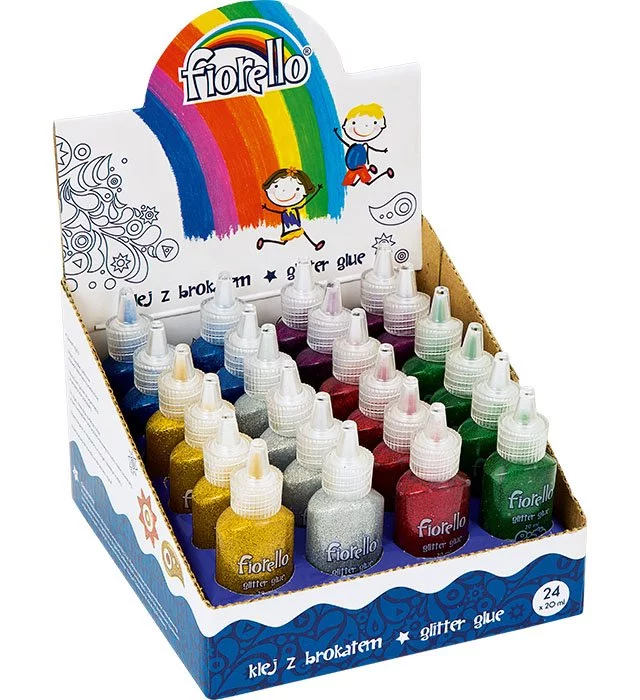 – dekoracyjny bezbarwny klej w płynie zawierający drobinki brokatu