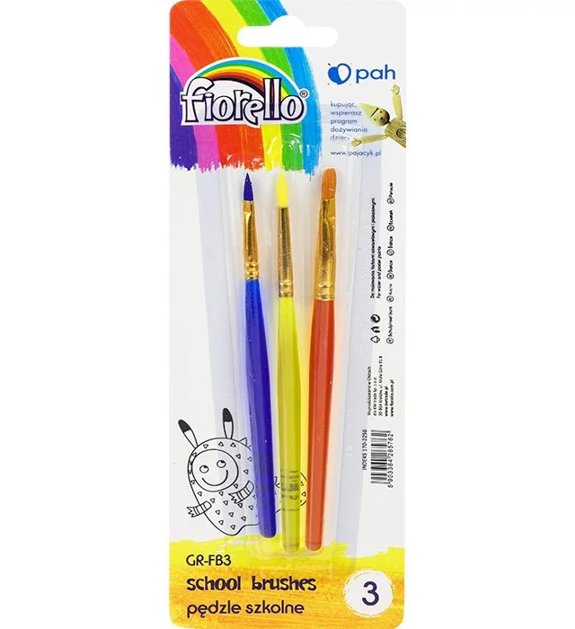 – zestaw pędzelków w krótkich, kolorowych uchwytach z przezroczystego plastiku