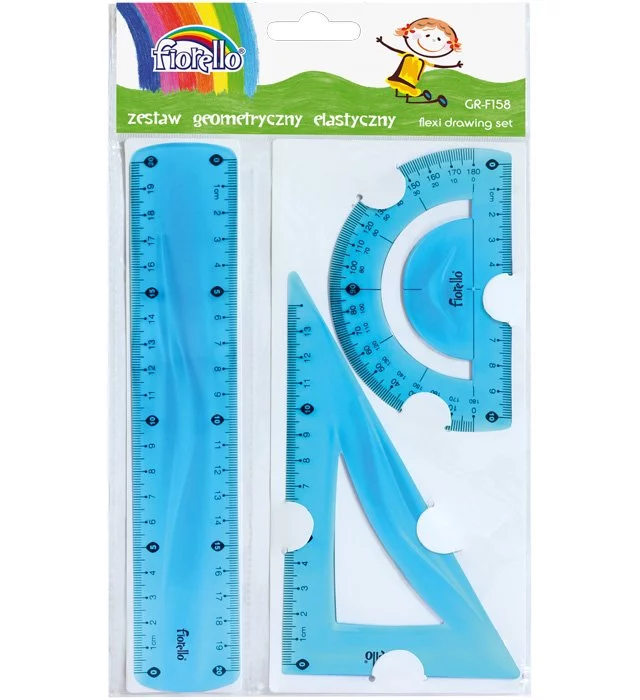 – zawiera 3 elementy: linijka 20 cm, ekierka 14 cm, kątomierz 10 cm