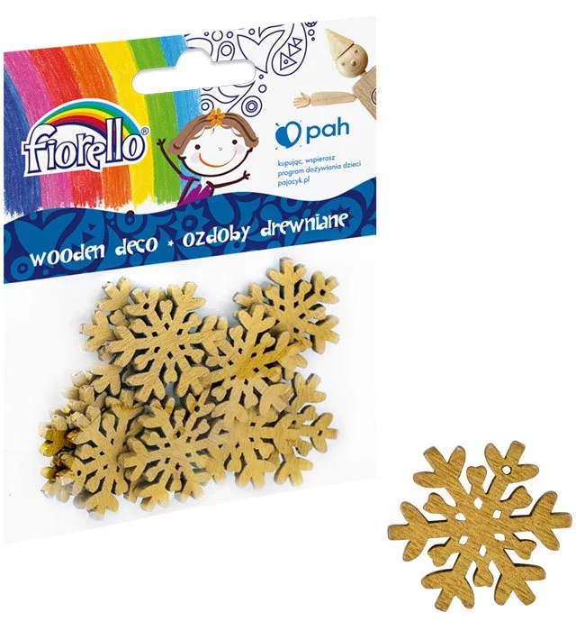 Ozdoby drewniane FIORELLO GR-WD858 śnieżynka 30mm, 10 szt.