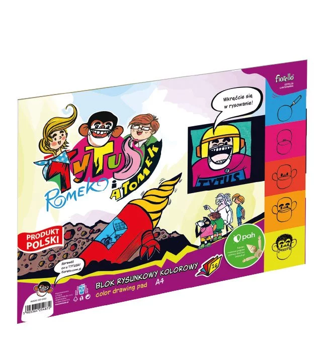 Blok rysunkowy kolorowy Fiorello A4/16 kartek Tytus, Romek i A”Tomek