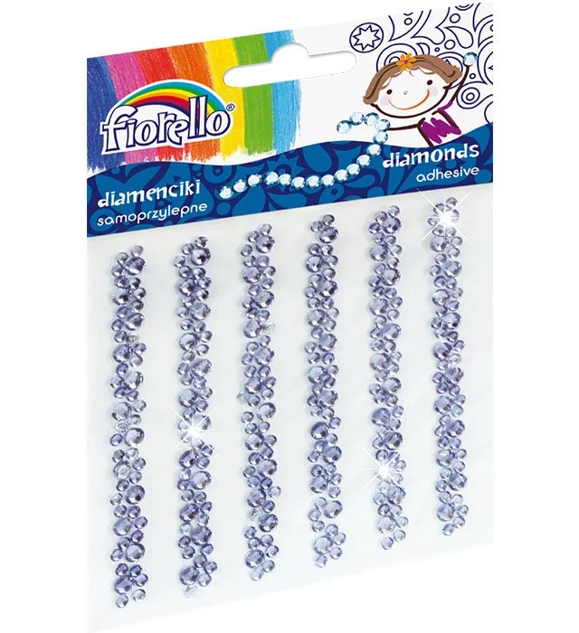 – błyszczące diamenciki samoprzylepne w różnych kolorach i rozmiarach