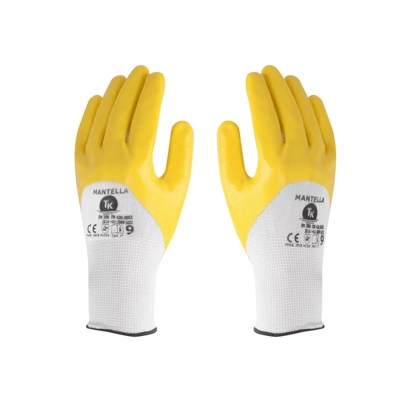 - Mantella – dziana rękawica ochronna pokryta dość grubym żółtym nitrylem.