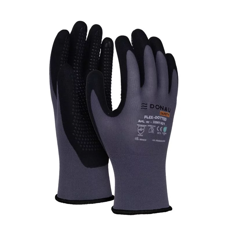 Rękawice Donau Safety Flex-Dotted Kat. II Rozmiar 10 Szare – Maksymalna Przyczepność i Komfort w Profesjonalnym Wydaniu