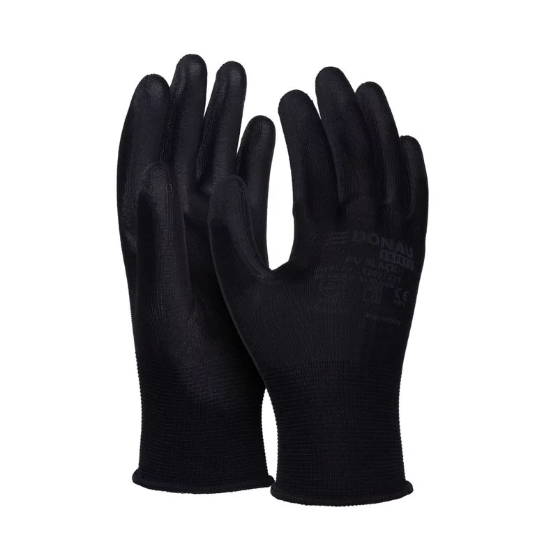 Rękawice Donau Safety PU Black Kat. II Rozmiar 10 – Czarne, Trwałe i Gotowe na Wyzwania