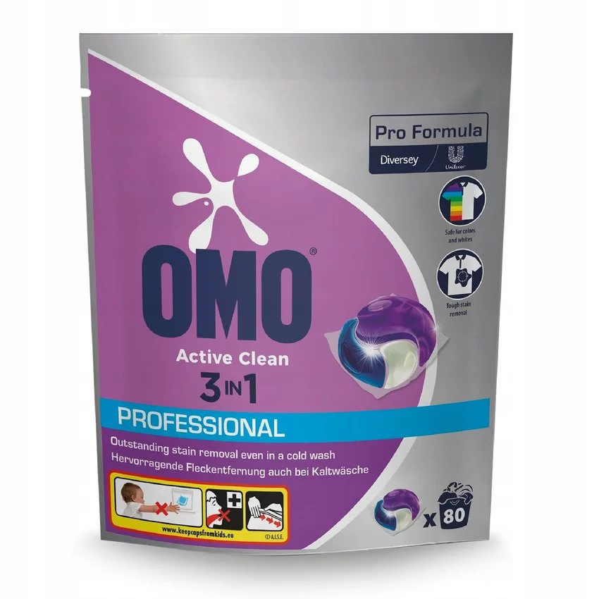 Omo Professional Pro Formula Active Clean 3in1 (80 kapsułek) to innowacyjne, wysoko skoncentrowane kapsułki do prania, które gwarantują wyjątkową skuteczność nawet w niskich temperaturach. Unikalna formuła zapewnia potrójne działanie: skutecznie usuwa uporczywe plamy, chroni włókna i kolory tkanin, a także pozostawia długotrwałą świeżość.