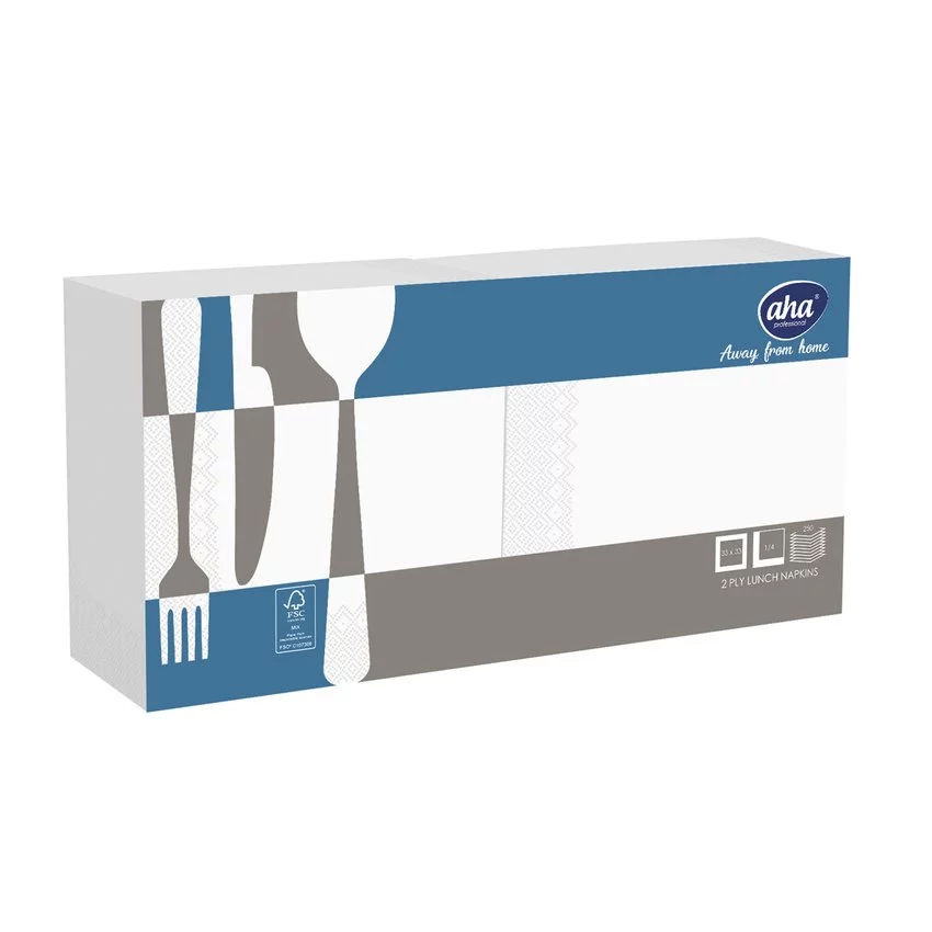 Serwetki AFH AHA, 2-warstwowe, składanie 1/4, 33x33cm, 250 szt., białe — Doskonały wybór dla branży hotelowej, eventowej oraz szeroko pojętej gastronomii