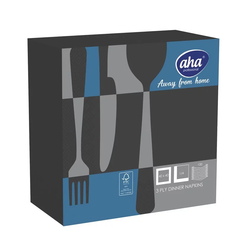 Serwetki AFH AHA, 3-warstwowe, składanie 1/4, 40x40cm, 100 szt., czarne — Doskonały wybór dla branży hotelowej, eventowej oraz szeroko pojętej gastronomii