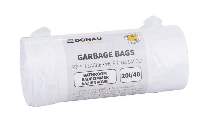 Worki na śmieci DONAU HOME, łazienkowe (HDPE), 20l, 40 szt., białe — Trwała worki łazienkowe wykonane z elastycznego tworzywa HDPE idealne do koszy o pojemności 20 litrów sprawdzą się w łazienkach domowych, biurowych oraz hotelowych dzięki swojej konstrukcji są odporne na wilgoć i przypadkowe rozdarcia 40 szt. W j. S.