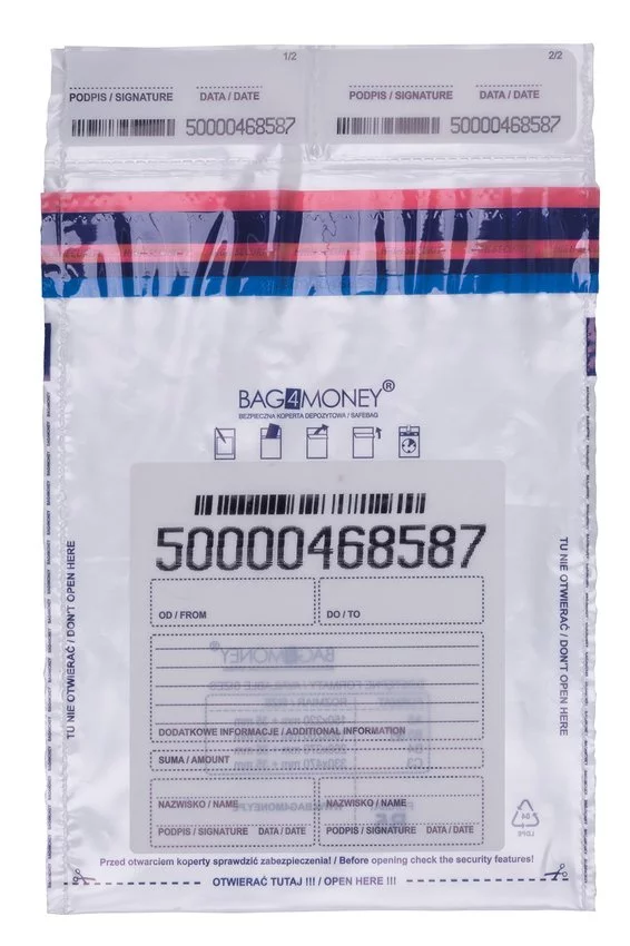 Koperta bezpieczna OFFICE PRODUCTS, B5, 190x260mm, 50szt., transparentna — Koperta bezpieczna, foliowa posiada zabezpieczenia dzięki którym po zaklejeniu każda próba otwarcia pozostawia widoczne ślady minimalizuje ryzyko ingerencji osób postronnych zastosowanie w sektorze bankowym do przechowywania i transportu gotówki oraz logistycznym do przesyłania ważnych dokumentów przydatna dla osób prywatnych na przykład do przesyłania kluczy/kart samochodowych każda koperta ma niepowtarzalny numer z kodem kreskowym na kopercie miejsca do wpisywania danych (data, opis itp. ) 50 szt. W j. S.