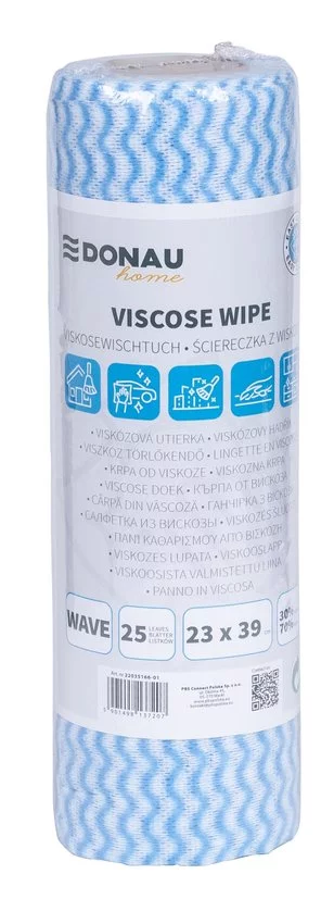 Ścierka DONAU HOME, z wiskozą 70%, rolka, fala, 23x39cm, 25 listków, niebieska — Ściereczki fala dzięki unikalnej strukturze z systemem otworków zapewniają maksymalną absorpcję wody, substancji oleistych, farb i detergentów są niezwykle trwała, odporne na uszkodzenia mechaniczne idealnie sprawdzą się zarówno na sucho, jak i na mokro błyskawiczne wchłanianie i skuteczne czyszczenie wszechstronne zastosowanie – w kuchni, warsztacie, biurze czy garażu 25 listków na jednej rolce