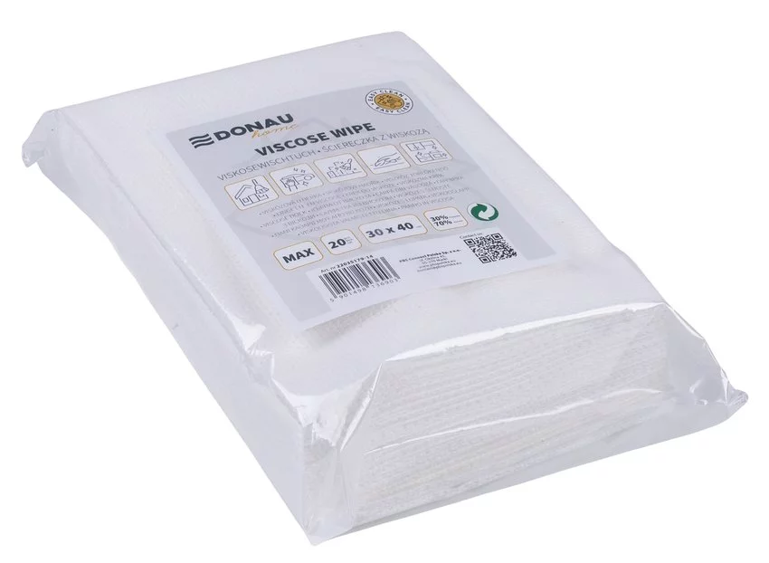 Ścierka DONAU HOME, z wiskozą 70%, składana, max, 30x40cm, 20 szt., biała — Ściereczki maxi dzięki unikalnej strukturze z systemem otworków zapewniają maksymalną absorpcję wody, substancji oleistych, farb i detergentów są niezwykle trwała, odporne na uszkodzenia mechaniczne miękka i perforowana struktura sprawia, że ściereczki są komfortowa w użyciu nie pozostawiają smug ani zarysowań, dzięki czemu każda powierzchnia pozostaje idealnie czysta idealnie sprawdzą się zarówno na sucho, jak i na mokro błyskawiczne wchłanianie i skuteczne czyszczenie wszechstronne zastosowanie – w kuchni, warsztacie, biurze czy garażu 20 szt.