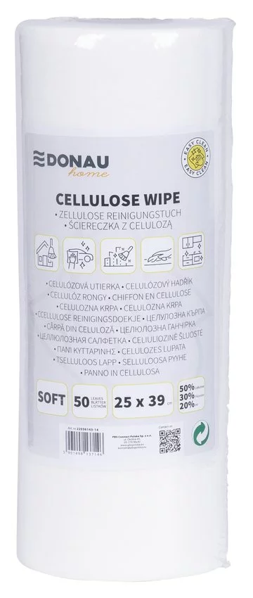Ścierka DONAU HOME z celulozą 50%, rolka soft 25x39cm 50 listków biała