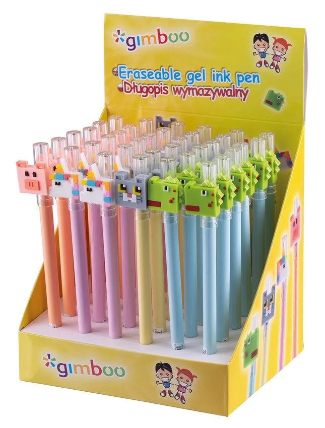 Długopis wymazywalny GIMBOO pikselowe zwierzaki pakowany w displayu mix kolorów/wzorów