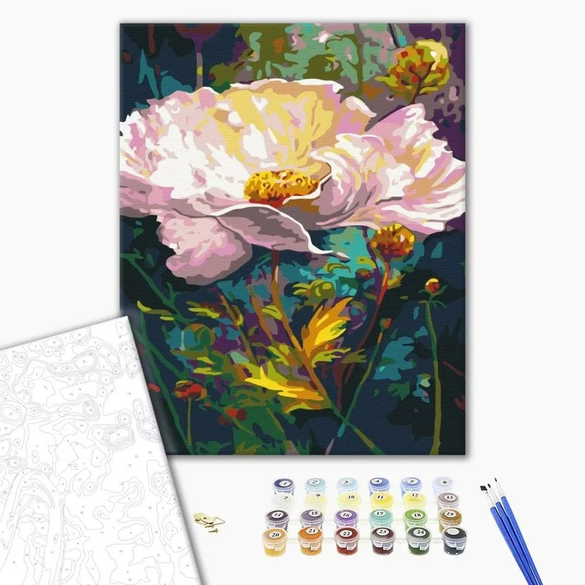Malowanie po numerach BRUSHME, 40x50 cm, wspaniały kwiat, 1 szt., w pudełku — Obraz na płótnie do malowania po numerach doskonała forma relaksu, pozwalająca każdemu poczuć się jak prawdziwy artysta obraz jest podzielony na pola, z których każde oznaczone jest numerem odpowiadającym temu samemu numerowi słoiczka z farbą stworzone własnoręcznie dzieło ozdobi Twój dom lub będzie niezwykłym prezentem dla kogoś wyjątkowego w zestawie znajduje się wszystko czego potrzebujesz aby od razu zacząć przygodę z malowaniem: solidnej jakości płótno z naniesionymi konturami rysunku, oznaczonymi liczbą zestaw farb akrylowych, ponumerowanych zgodnie z numerami kolorów, na które podzielone jest płótno 3 szt. Pędzli o różnej wielkości: mały, średni i duży, dzięki czemu można dopasować rozmiar pędzla do malowanego obszaru instrukcja