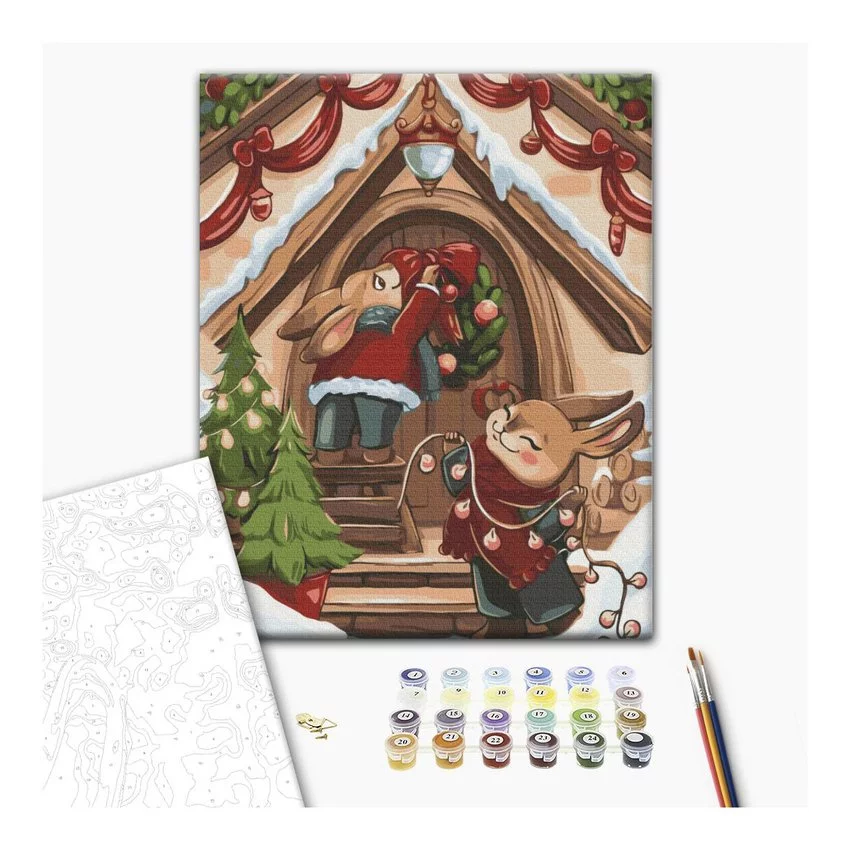 Malowanie po numerach BRUSHME, 30x40 cm, świąteczne króliczki, 1 szt. — Obraz do malowania po numerach to doskonała forma relaksu, która pozwala każdemu poczuć się jak prawdziwy artysta dzięki numerom, malowanie staje się łatwe i przyjemne w zestawie: solidnej jakości płótno z naniesionymi konturami rysunku, oznaczonymi liczbą zestaw farb akrylowych, ponumerowanych zgodnie z numerami kolorów, na które podzielone jest płótno 3 szt. Pędzli o różnej wielkości: mały, średni i duży, dzięki czemu można dopasować rozmiar pędzla do malowanego obszaru instrukcja rysowania dla początkujących
