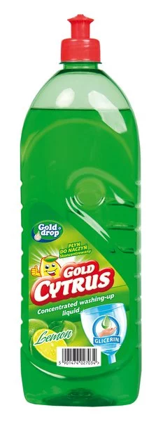 Gold Cytrus Cytryna to bardzo wydajny płyn do mycia naczyń kuchennych. Jest gęsty i dobrze się pieni, co sprawia, że jest ekonomiczny w zastosowaniu. Można nim myć powierzchnie z metalu, szkła i tworzywa sztucznego.