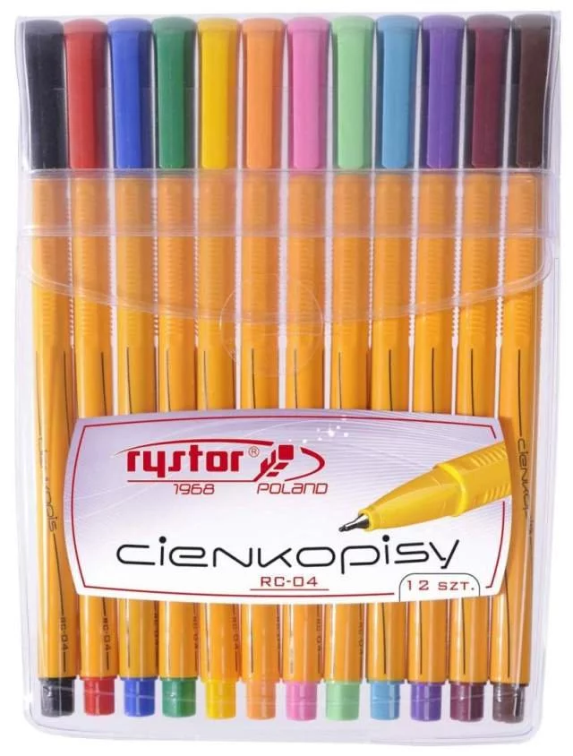Tusz na bazie wody, może być pozostawiony bez zatyczki przez wiele dni (nie krócej niż produkty z systemem „dry safe ink” i „cap off”) - nie zaschnie zgodnie z wymogami normy ISO 554. Fibrowa końcówka oprawiona w metal. Wentylowana skuwka. Szerokość linii 0,4 mm. Korek w obudowie i nasadka określa kolor tuszu. Nasadka posiada wygodny klip.