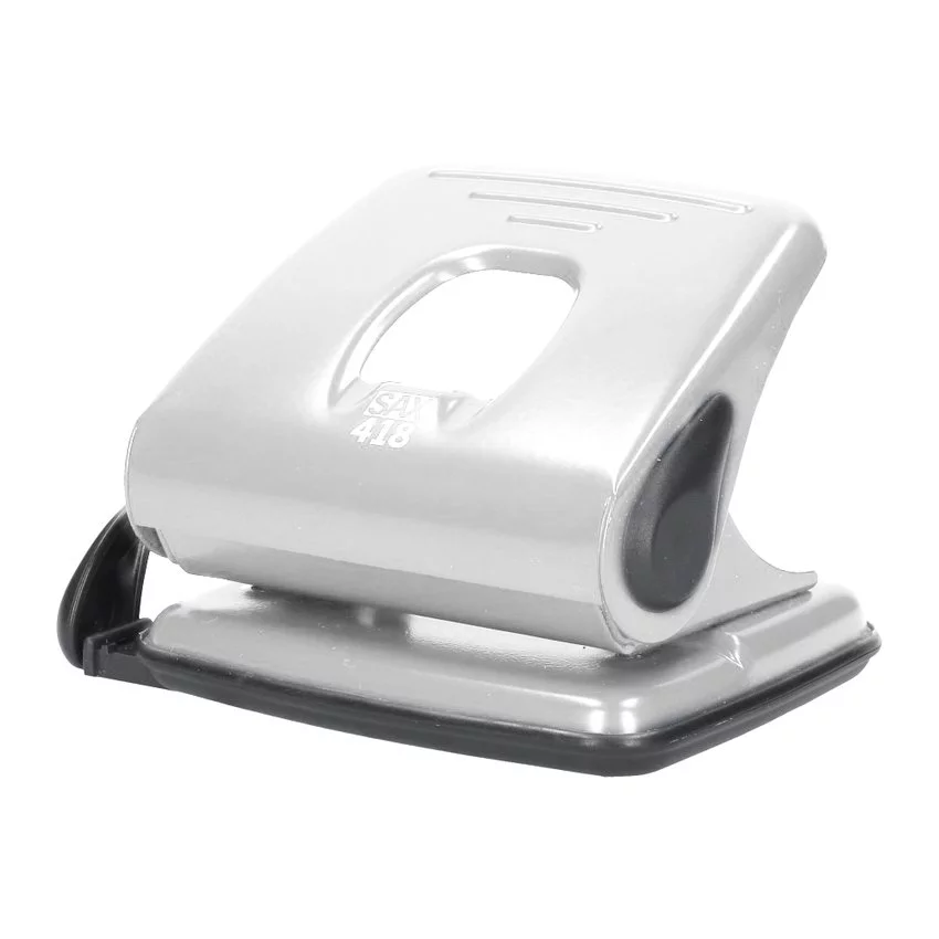 Dziurkacz biurowy SAX418 to propozycja dla osób, które potrzebują małego dziurkacza, który sprawdzi się zarówno w domu, szkole jak i małym biurze. Model 418 firmy SAX wykonany jest w całości z metalu co sprawia, iż jest solidny i bardzo wytrzymały. Dodatkowo dziurkacz posiada ogranicznik formatu a jego zdolność dziurkowania to do 25 kartek papieru jednocześnie. Producent daje na dziurkacz 10 lat gwarancji.