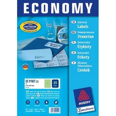 Etykiety Samoprzylepne Economy Europe100 by Avery 210x297 1/A4 A'25 Zielone No.EC9187-25 [ WYPRZEDAŻ ]