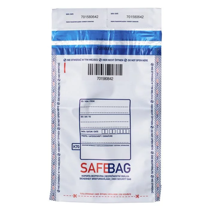 Koperty SafeBag z folii LDPE z bezpiecznym zamknięciem do przesyłek wartościowych i tajnych.