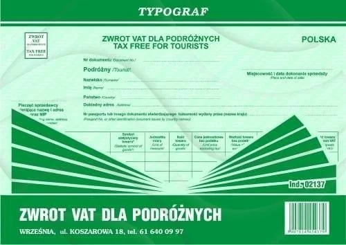 Zwrot VAT dla Podróżnych A4 Offset 02137 /Typograf
