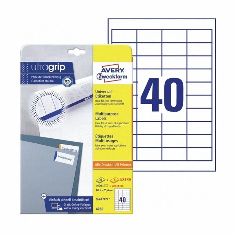 Etykiety Samop. Avery 48,5x25,4 40/A4 A'25 QuickPeel Białe No.4780