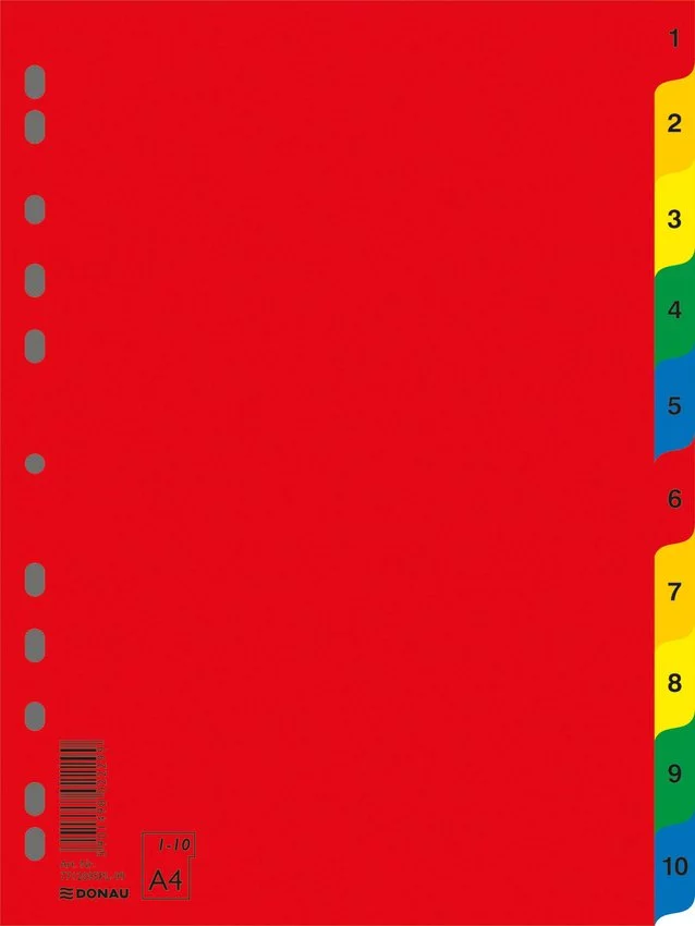 Przekładki PP A4 Numeryczne 1-10 Kolorowe /Donau