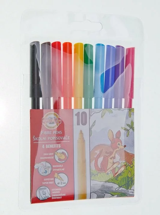 Szkolne flamastry zmywalne z ergonomicznym trójbocznym uchwytem. W przypadku pobrudzenia ubrania lub rąk (czy też innych przedmiotów) łatwe w usunięciu za pomocą wody z mydłem (pranie w temperaturze 40 st. C). Bezpieczne dla użytkownika, produkowane zgodnie z europejskimi normami bezpieczeństwa. Mają gwaratntową przydatnosć do użycia aż do 4 lat. Opakowanie kartonowe lub PP.